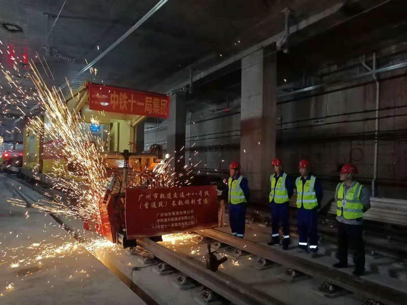 軌道焊機(jī)在焊接最后一個接頭己貫通的長軌長軌貫通祝賀長軌貫通
