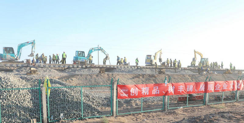 新建的古爾班、托莫伊、谷峽三處會(huì)讓站是烏將鐵路擴(kuò)能改造工程中的第一項(xiàng)重點(diǎn)施工項(xiàng)目,工期只有短短一個(gè)月。面對(duì)時(shí)間緊、任務(wù)重、標(biāo)準(zhǔn)高、困難多的施工環(huán)境,項(xiàng)目部與時(shí)間賽跑,積極協(xié)作、連續(xù)作業(yè)、頑強(qiáng)拼搏,克服天氣對(duì)施工的不利影響,最終正點(diǎn)開(kāi)通了新建會(huì)讓站古爾班站、古峽站。