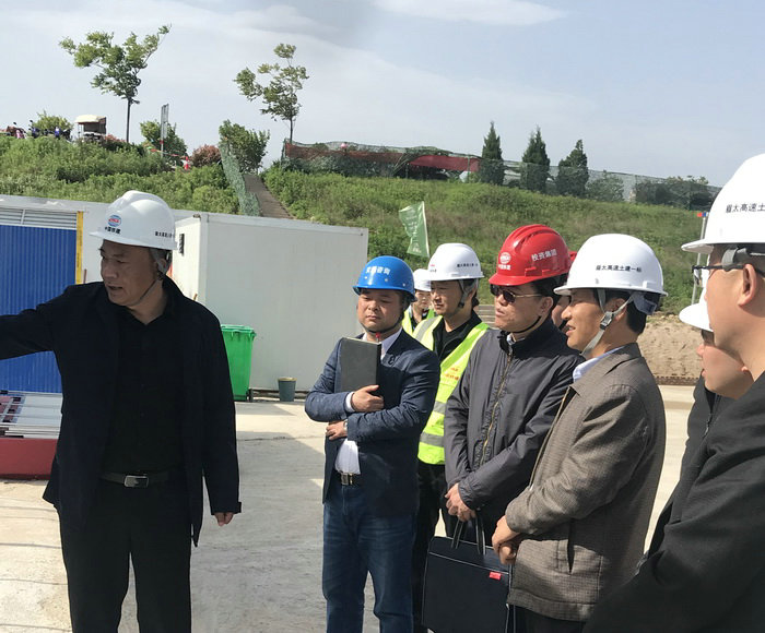 圖為調(diào)研組領(lǐng)導(dǎo)在工地