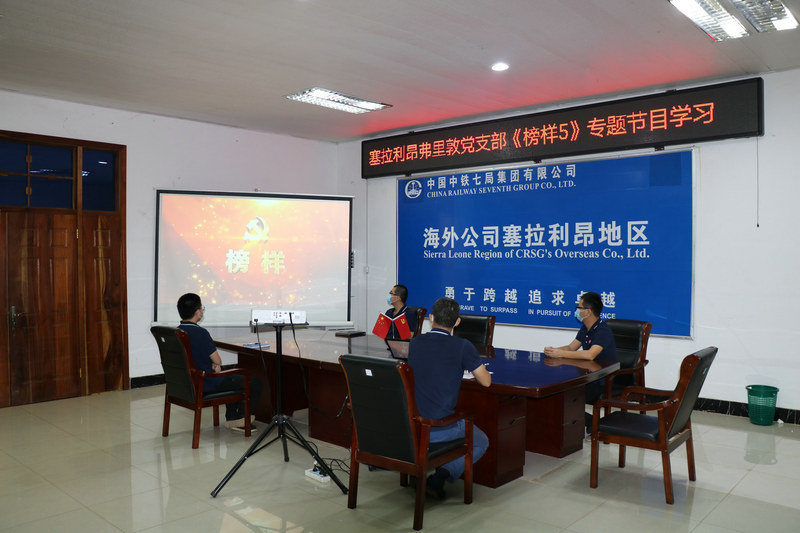 根據(jù)上級(jí)黨委關(guān)于學(xué)習(xí)收看《榜樣5》專題節(jié)目和組織觀看中鐵七局黨委《黨旗飄揚(yáng),一路有我》黨史學(xué)習(xí)教育宣傳視頻的有關(guān)通知要求,2021年4月28日,中鐵七局海外公司塞拉利昂弗里敦黨支部及時(shí)組織在崗黨員和地區(qū)經(jīng)理部、弗馬公路事業(yè)部職工群眾進(jìn)行了集中觀看學(xué)習(xí)。