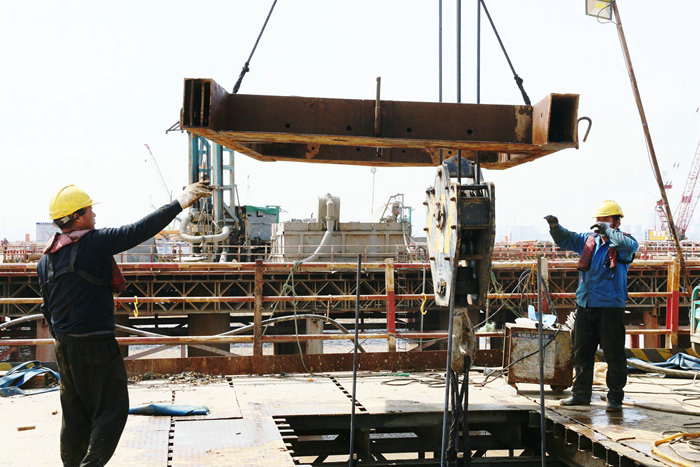 該合同段預(yù)計(jì)年底全部完成樁基施工,濱海高架橋7月下旬完成主體工程。