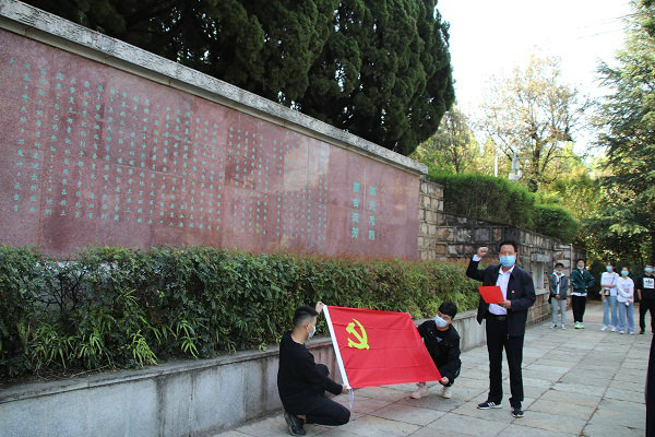 “五一”前夕,福宜項目組織全體黨員同志游覽了黑龍?zhí)读沂苛陥@,一行人滿懷虔誠,抬著鮮花花籃,順著陵園的石階小道曲折而上,來到山坡上一片靜謐的地方。首先映入眼簾額就是馬登云、王德三、吳澄三位烈士的墓碑,墓碑的右上方是烈士們的生平,聆聽講解員講解烈士們的英雄事跡,心中感慨萬千,但此時卻無聲勝有聲。在莊嚴肅穆的氛圍中,我們排成一排向烈士敬獻花籃,緬懷革命先輩的光輝業(yè)績。所有黨員高舉右手,在先烈墓前一句句重溫入黨誓詞,面對此情此景我總是心潮澎湃、思緒萬千,仿佛烈士們戰(zhàn)斗的場景在我眼前一幕幕閃現(xiàn)。