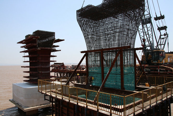 3日上午,項目部接到寧波市防汛防臺抗旱指揮部辦公室通知:5月3日夜里到4日有中到大雨,局部有暴雨,降雨量20—40毫米,局部50毫米以上,寧波沿海海面有7—9級偏南大風(fēng),請做好防汛防大風(fēng)準(zhǔn)備。杭甬項目部針對惡劣天氣對施工的不利影響,立即啟動防汛防大風(fēng)應(yīng)急預(yù)案,組織人員對S3標(biāo)段部分已安裝好等待立模、灌注的10多個海上橋墩鋼筋籠進(jìn)行加固,并對塔吊、履帶吊等大型設(shè)備進(jìn)行了安全防護(hù)。