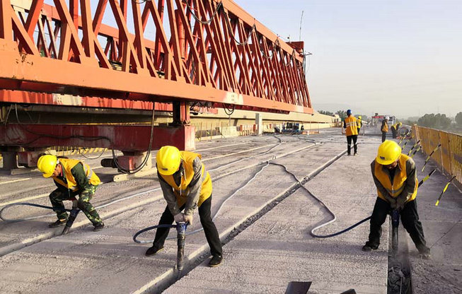 清晨6點15分,當(dāng)晨曦里的第一縷陽光升起,新鄉(xiāng)牧野大橋項目施工現(xiàn)場已經(jīng)開始機(jī)械轟鳴、人頭攢動,參建人員正以昂揚的姿態(tài)和飽滿的熱情投身到鐵路上方第8跨舊橋鉸縫鑿除施工中。由于該工程全部為營業(yè)線施工,拆除舊橋要點施工安全系數(shù)高、鐵路干擾多、橋梁上部作業(yè)面窄,同時目前正處于京廣鐵路“集中修”時期,導(dǎo)致工程涉鐵手續(xù)辦理困難、給點次數(shù)少,面對種種不利因素和時間緊、任務(wù)重的壓力,中原公司積極應(yīng)對,周密部署,施工前對臨時用電、施工機(jī)具、應(yīng)急設(shè)備等進(jìn)行嚴(yán)格檢查,就作業(yè)程序、施工要點和安全注意事項對作業(yè)人員進(jìn)行現(xiàn)場交底,確保點內(nèi)工序銜接緊密,緊湊施工,全力加快工程進(jìn)度,利用8個營業(yè)線III級要點完成60米防撞墻拆除和180米鉸縫切割施工任務(wù),為下一步鐵路正上方空心板梁拆除施工提供了有力保證。