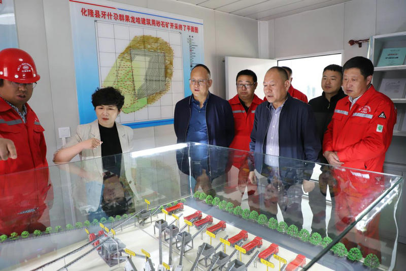 何艦一行參觀了化隆砂石廠的工藝流程展示,全面了解了礦區(qū)生產(chǎn)及開(kāi)采過(guò)程、生產(chǎn)加工設(shè)備、自動(dòng)數(shù)控化操作流程等環(huán)節(jié),著重了解了砂石廠生態(tài)環(huán)保生產(chǎn)理念及措施。