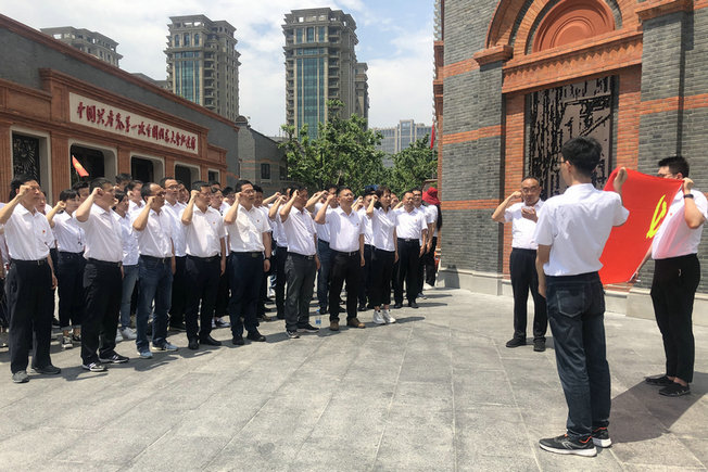 “一大”會(huì)址門(mén)前,大家面對(duì)黨旗重溫入黨誓詞。“回望源頭,汲取信仰力量,面向未來(lái),更思肩上重任”,黨員們表示要堅(jiān)持初心如磐,使命在肩,在崗位上兢兢業(yè)業(yè),切實(shí)發(fā)揮共產(chǎn)黨員先鋒模范作用。