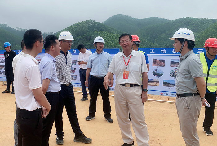 本網(wǎng)廣西南寧訊(通訊員 蔡曉菲)5月21日上午,廣西南寧市政協(xié)副主席、市總工會主席陳世平、市政協(xié)常委薛文、賓陽縣人民政府副縣長麥陽明、賓陽縣政協(xié)主席張昭平、副主席韋方琛在陳平鎮(zhèn)政府相關(guān)人員陪同下,來到中鐵二十一局承建的廣西六賓三標項目陳平互通項目建設(shè)現(xiàn)場調(diào)研。