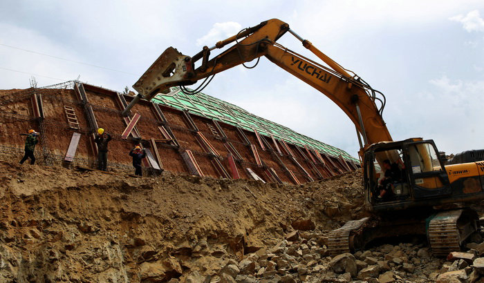 5月24日,幾位民工在路基刷坡后行綠化作業(yè)。擔負甘肅天水(至)莊浪高速公路6標施工的中鐵二十一局三公司,針對天水地區(qū)自然生態(tài)綠色植被脆弱、草木生長慢等生態(tài)缺陷,在施工中,樹立生態(tài)環(huán)保第一的先行理念,在高邊坡網(wǎng)格內(nèi)及時噴播草籽,提前規(guī)劃綠化帶,使春季種植花草成效明顯,受到當?shù)卣頁P。