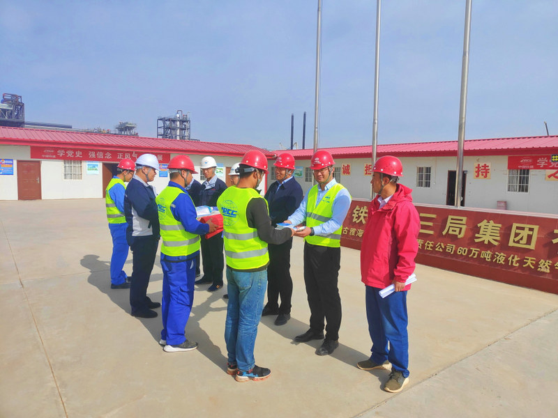 雅海能源項目部安全生產(chǎn)月啟動儀式上向施工單位發(fā)放安全生產(chǎn)手冊和宣傳品