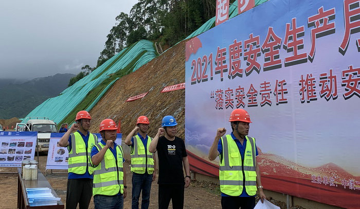 本網(wǎng)南寧6月6日訊(通訊員 蔡曉菲 龍凡)近日,在全國(guó)第20個(gè)“安全生產(chǎn)月”到來之際,中鐵二十一局六賓三標(biāo)項(xiàng)目部在施工現(xiàn)場(chǎng)舉行“安全生產(chǎn)月”活動(dòng)啟動(dòng)儀式,以此推動(dòng)項(xiàng)目安全生產(chǎn)新局面。項(xiàng)目經(jīng)理王永奇宣布“安全生產(chǎn)月”活動(dòng)正式啟動(dòng)并致辭,安全總監(jiān)吳大剛帶領(lǐng)全體人員宣誓。