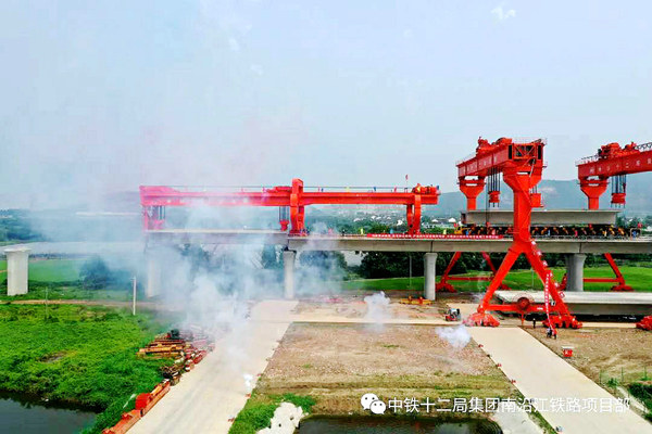 鐵路工程建設(shè)網(wǎng)江蘇江陰訊(特約通訊員 鄭建軍 攝影報(bào)道)據(jù)江蘇省鐵路集團(tuán)副總經(jīng)理錢永祥介紹,南沿江城際鐵路自京滬高鐵南京南站的寧安場,途經(jīng)南京江寧區(qū),鎮(zhèn)江句容市,常州金壇區(qū)、武進(jìn)區(qū)和經(jīng)濟(jì)開發(fā)區(qū),無錫江陰市,蘇州張家港市、常熟和太倉等11個(gè)縣市(區(qū)),終至在建的滬通鐵路(上海—南通)太倉站。新建正線長度278.53公里,設(shè)計(jì)時(shí)速為350公里/小時(shí)。全線共設(shè)南京南-句容-金壇-武進(jìn)-江陰-張家港-常熟-太倉等8個(gè)車站,并在太倉經(jīng)滬通鐵路一期接入上海。項(xiàng)目建設(shè)總工期為4年。近期規(guī)劃開行客車100對/日,遠(yuǎn)期規(guī)劃開行客車130對/日,最小行車間隔為3分鐘。為了加快南沿江城際鐵路的建設(shè),中鐵十二局集團(tuán)的參建者在拼搶因疫情耽誤的工期同時(shí),及時(shí)啟動了架梁計(jì)劃。這樣,雖然增加架梁難度,但橋上橋下工程可以同時(shí)進(jìn)行,有力的保證了整體工期的實(shí)現(xiàn)。