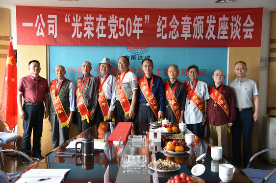 6月17日上午,中鐵二十一局一公司舉行“光榮在黨50年”紀(jì)念章頒發(fā)座談會。公司黨委副書記、紀(jì)委書記關(guān)崇屹、工會主席相立群代表公司黨委為8名老黨員代表頒發(fā)紀(jì)念章。