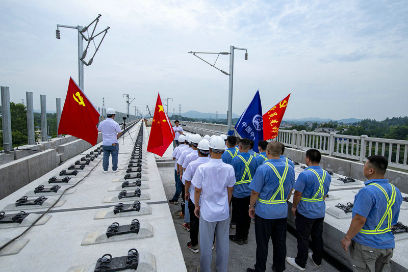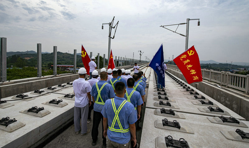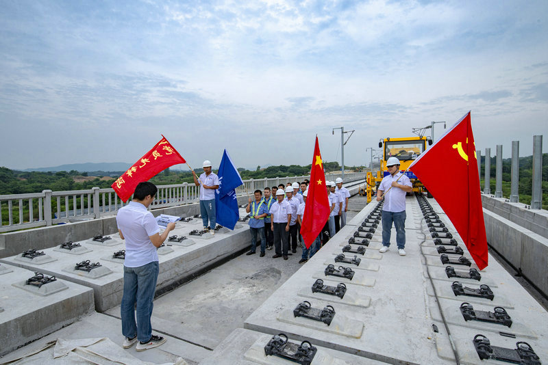 線橋公司黃黃項(xiàng)目 黨課開在鋪軌施工一線