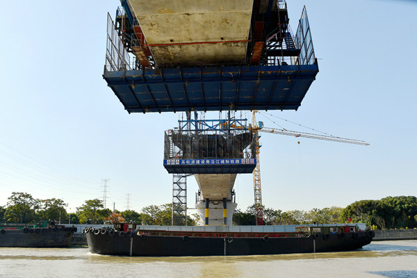 鐵路工程建設網(wǎng)江蘇江陰訊(特約通訊員 鄭建軍 攝影報道)江蘇南沿江城際鐵路是國內(nèi)第一條由省政府主導投資建設的城際鐵路,也是長江經(jīng)濟帶綜合立體交通走廊規(guī)劃中的重要線路,該鐵路是時速350公里的高速鐵路,新建正線長度278.33公里,建設工期為4年。作為滬寧間繼京滬高鐵和滬寧城際鐵路之后的第3條高速鐵路,南沿江城際鐵路建設的一個重要意義在于,鐵路途經(jīng)區(qū)域是江蘇省和長三角地區(qū)城市最為密集、城鄉(xiāng)一體化程度最高、經(jīng)濟社會發(fā)展基礎最好的地區(qū)之一。該條鐵路全線共設南京南、句容、金壇、武進、江陰、張家港、常熟、太倉等8個車站。為確保加快工程建設進度,中鐵十二局集團南沿江城際鐵路項目經(jīng)理部自進場以來,積極組織施工,投入各種生產(chǎn)要素,加強連續(xù)梁的攻堅作業(yè),標段內(nèi)的二十四處連續(xù)梁正逐步合龍,確保了架梁通道的暢通。