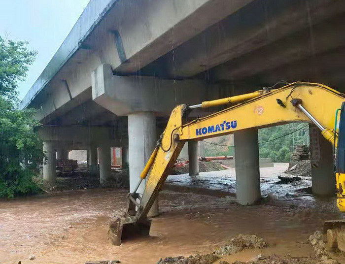 由于洪水迅猛,暴雨導(dǎo)致金字牌河道洪水暴漲,把螺旋管都沖散沖走,過(guò)往路段水流湍急,積水嚴(yán)重,為了保障材料不受損失,立即調(diào)配吊車(chē)進(jìn)行起吊補(bǔ)救,防洪小組成員在暴雨中指揮,展開(kāi)搶救和疏通,利用挖掘機(jī)大型機(jī)械對(duì)邊坡進(jìn)行圍填,對(duì)過(guò)往路面進(jìn)行排險(xiǎn)和疏通。對(duì)易造成地質(zhì)災(zāi)害的路段進(jìn)行風(fēng)險(xiǎn)隱患排查,及時(shí)采取安全措施并派出值班車(chē)輛,值班巡視小組24小時(shí)巡查值班制度,壓實(shí)防洪防汛責(zé)任,細(xì)化防汛措施和責(zé)任分工,加強(qiáng)汛情信息發(fā)布,把損失最大限度降到最低。