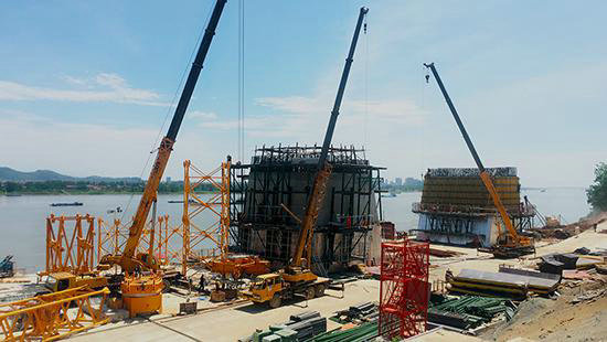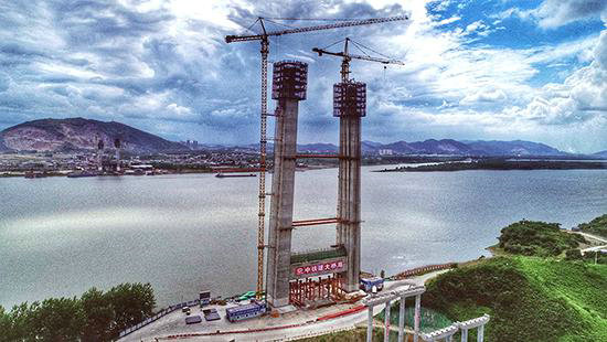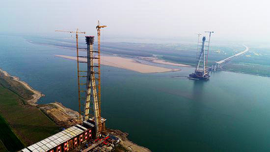 圖為湖北石首長(zhǎng)江大橋施工