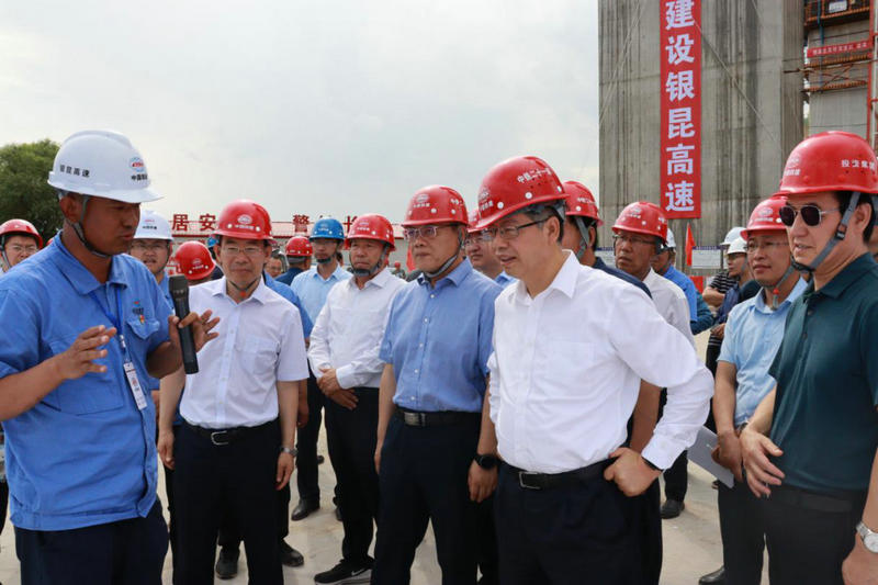 7月5日,寧夏回族自治區(qū)副主席劉可為蒞臨中鐵二十一局銀昆高速公路12-2標(biāo)項(xiàng)目施工現(xiàn)場(chǎng)調(diào)研指導(dǎo)工作,寧夏交通廳廳長(zhǎng)曹志斌、中鐵建寧夏高速公路有限公司董事長(zhǎng)劉虎軍等領(lǐng)導(dǎo)陪同調(diào)研。