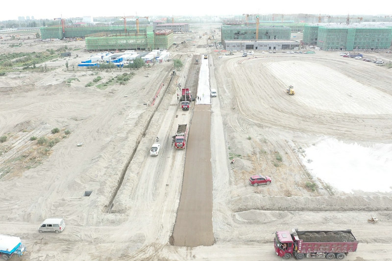 2021年7月8日,塔里木職業(yè)技術(shù)學(xué)院項(xiàng)目校園內(nèi)部道路水穩(wěn)層施工正式開始。一期施工總長(zhǎng)3000米,厚度20厘米。