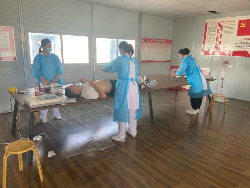當(dāng)日,醫(yī)療小分隊為項目人員及全體務(wù)工人員進(jìn)行了量血壓、測血糖、問診、把脈、做B超和心電圖等內(nèi)容,對患病人員配發(fā)了藥品。醫(yī)務(wù)人員耐心解答了務(wù)工人員提出的各種問題,并對其健康癥狀進(jìn)行相關(guān)的講解并給予飲食建議,讓他們及時了解自己的身體狀況及相關(guān)疾病的預(yù)防。他們還拓展服務(wù)項目,延伸服務(wù)觸角,積極開展夏季養(yǎng)生知識講座、宣傳文明健康生活方式、普及健康保健和心肺復(fù)蘇急救知識和技能。