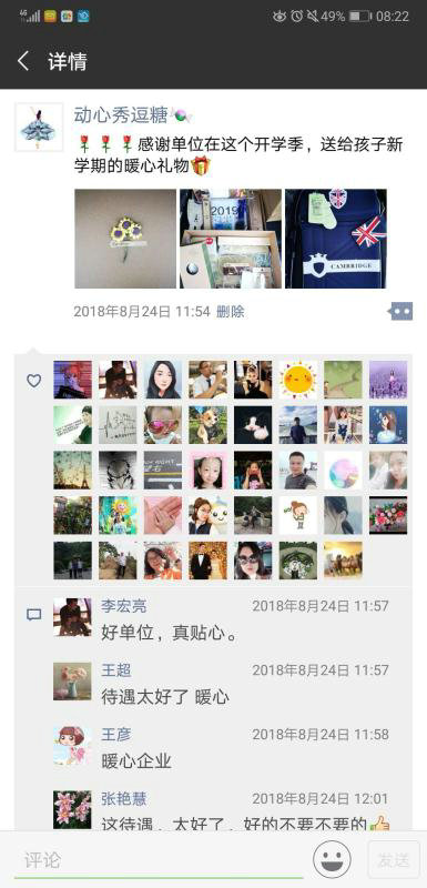 “感謝單位在這個開學(xué)季,送給孩子新學(xué)期的暖心禮物”,“背著我們單位工會送的開學(xué)大禮包上學(xué)去啦!寶寶心情美美的!媽媽心里暖暖的!”這兩天,中國鐵建大橋局建筑公司的職工們紛紛在朋友圈內(nèi)“秀”起了公司為孩子們準(zhǔn)備的“開學(xué)季大禮包”,瞬間感受到了“爆棚”的獲得感。