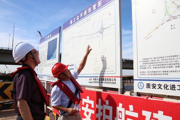 下午3點(diǎn),陳戈到杭甬項(xiàng)目濱?;ネㄗ屑?xì)查看了棧橋架設(shè)、鋼護(hù)筒打插、鉆孔機(jī)鉆孔,承臺(tái)、墩身模具安裝、塔吊作業(yè),以及連續(xù)梁施工工藝流程,查看了“大臨”鋼筋加工棚技術(shù)工人加工鋼筋籠情況。他在檢查過程中,聽取了二公司副總工程師兼杭甬項(xiàng)目負(fù)責(zé)人黃偉關(guān)于項(xiàng)目安全質(zhì)量、進(jìn)度環(huán)保和下一步施工推進(jìn)方案等情況介紹。