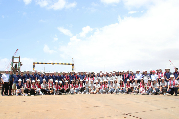 上午10點(diǎn)半,載著大學(xué)生的兩輛大客車(chē)抵達(dá)杭甬項(xiàng)目部。首先在項(xiàng)目部舉行了一個(gè)半小時(shí)的觀摩座談會(huì),該項(xiàng)目部班子成員、各部門(mén)負(fù)責(zé)人參加,公司人力資源部部長(zhǎng)馮進(jìn)主持。大家首先觀看了展示杭甬項(xiàng)目濱海高架、濱海互通全貌的短視頻,讓新學(xué)員對(duì)集團(tuán)公司重點(diǎn)項(xiàng)目、公司第一個(gè)海上項(xiàng)目有個(gè)初步了解??赐暌曨l,公司副總工程師兼杭甬項(xiàng)目負(fù)責(zé)人黃偉發(fā)言,他對(duì)大學(xué)生們的到來(lái)表示歡迎。他說(shuō),你們都是90后、00后,走出校門(mén),意味著走向人生的新征程。你們有知識(shí)、體力、精力上的優(yōu)勢(shì),接受新事物、適應(yīng)新環(huán)境的能力強(qiáng),要虛心向老同志學(xué),勤于實(shí)踐,善于動(dòng)腦筋想辦法解決工作中的困難和問(wèn)題。他回顧自己從一名大學(xué)畢業(yè)生一步一個(gè)腳印成長(zhǎng)為一名特級(jí)項(xiàng)目經(jīng)理的不尋常經(jīng)歷,深有感觸說(shuō),企業(yè)是每個(gè)有志者成才的搖籃,踏實(shí)做人,認(rèn)真做事,就一定能成為棟梁之才。