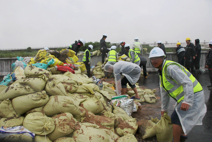 期間,接到鎮(zhèn)海區(qū)防臺(tái)風(fēng)加固海堤任務(wù)后,項(xiàng)目部出動(dòng)200人和多臺(tái)車(chē)輛冒著狂風(fēng)暴雨到達(dá)指定地點(diǎn),兵分三路,裝沙袋、往海堤上堆碼沙袋,從上午10點(diǎn)到晚上7點(diǎn),連續(xù)在風(fēng)雨里作戰(zhàn)10個(gè)小時(shí),圓滿完成了加固海堤任務(wù),在關(guān)鍵時(shí)刻彰顯了中國(guó)鐵建敢打硬仗、戰(zhàn)而必勝的鐵軍精神。