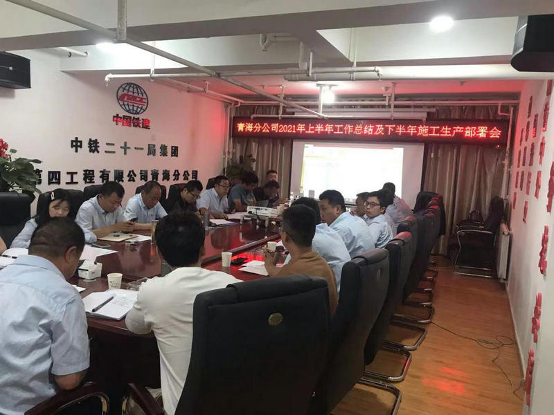 近日,中鐵二十一局四公司青海分公司召開(kāi)了2021年上半年工作總結(jié)及下半年施工生產(chǎn)部署會(huì),分公司領(lǐng)導(dǎo)班子及各攪拌站站長(zhǎng)、砂石料廠廠長(zhǎng)、各部室負(fù)責(zé)人參加了會(huì)議。
