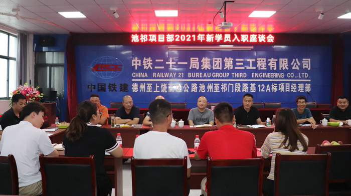 本網(wǎng)安徽黃山訊(通訊員 王克亮、張志春)7月27日下午,中鐵二十一局三公司池祁項目部四樓會議室掌聲陣陣、和諧融洽、氛圍輕松,正在舉辦2021年度新學員入職座談會。會議由項目黨支部書記杜強主持,項目經(jīng)理張一平、總工程師龔沛基、各部室負責人及往屆學員和導師參加了歡迎座談會。