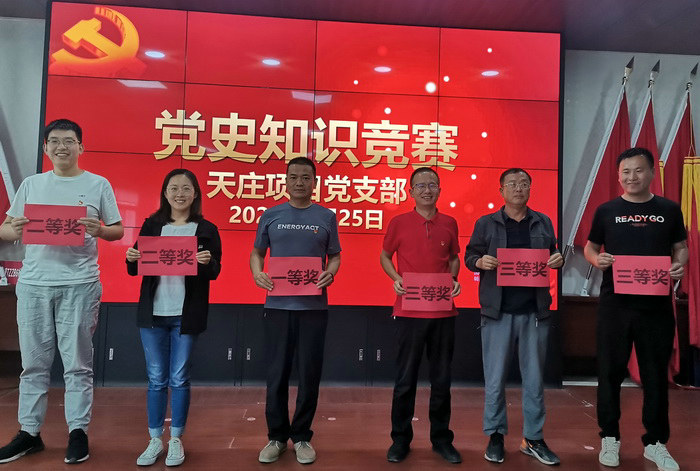 圖為獲獎(jiǎng)人員上臺(tái)領(lǐng)獎(jiǎng) 學(xué)史可鑒今、讀史可堅(jiān)志、讀史可自強(qiáng)、讀史可勵(lì)行。本次黨史知識(shí)競(jìng)賽的開(kāi)展,充分展現(xiàn)了項(xiàng)目全體人員“以賽促學(xué)、以學(xué)促行、比學(xué)趕超”的濃厚學(xué)習(xí)氛圍。使得全體黨員同志對(duì)黨的歷史、黨的理論路線(xiàn)、黨的各項(xiàng)方針政策又有了更深層次的了解。
