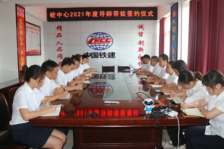 2021年7月27日上午,中鐵十一局二公司混凝土拌合站管理中心在中心會議室舉行2021年新員工導(dǎo)師帶徒簽約儀式,通過“二對一”雙導(dǎo)師帶徒,幫助青年員工開通成長成才“快車道”。