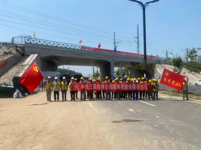 2021年7月30日上午8時,中鐵三局線橋公司隴海鐵路搶險突擊隊經(jīng)過10天的艱苦奮戰(zhàn),提前10小時完成隴海鐵路搶險任務(wù),為下午6點的上行線通車打下堅實基礎(chǔ)。