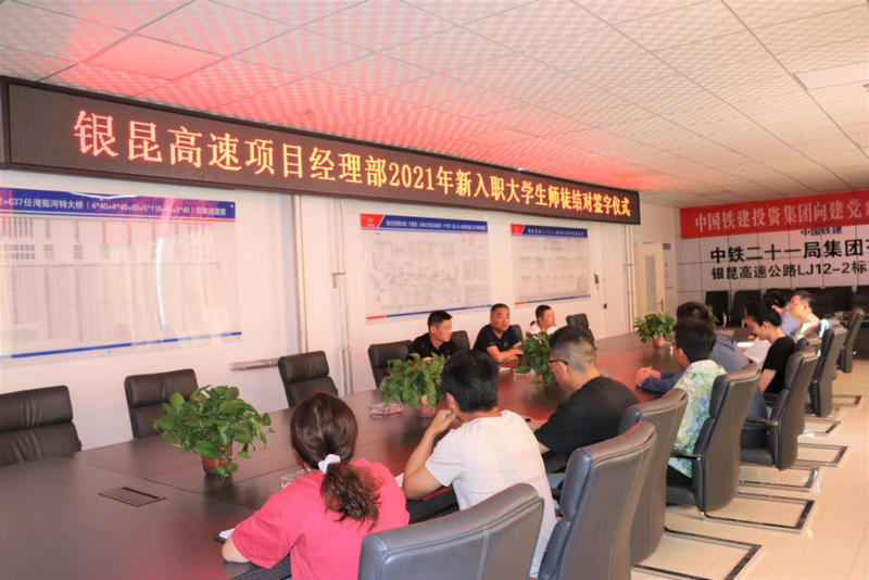 為進(jìn)一步加快新入職員工的成長(zhǎng),加強(qiáng)對(duì)新入職新員工的能力培養(yǎng),7月31日,中鐵二十一局銀昆高速公路LJ12-2標(biāo)項(xiàng)目經(jīng)理部開(kāi)展了2021年“師徒攜手·共促成長(zhǎng)”主題師徒結(jié)對(duì)簽約儀式。