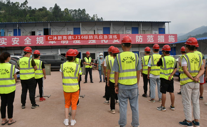 本網(wǎng)四川宜賓8月5日訊(通訊員 木杉 歐陽孔望)為進一步增強汛期雨季防洪意識,提高全員應(yīng)對突發(fā)汛情的快速反應(yīng)能力和應(yīng)急救援處置能力。今天上午,中鐵二十一局三公司四川仁沐新高速LJ16標(biāo)項目部組織開展了防洪防汛應(yīng)急演練。此次演練活動由項目安質(zhì)部組織,監(jiān)理單位、項目管理人員及現(xiàn)場施工人員40余人參與了演練活動。