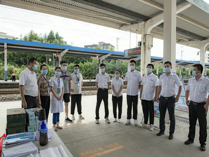 中鐵三局線橋公司黃黃項(xiàng)目浠水鋪軌基地志愿者慰問浠水車站防疫工作者