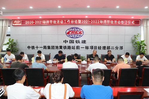 為進(jìn)一步加強(qiáng)青年員工隊(duì)伍建設(shè),增強(qiáng)新員工對企業(yè)的認(rèn)同感和歸屬感,更好地延續(xù)公司導(dǎo)師帶徒“老帶新+傳幫帶”的傳統(tǒng)。8月7日,中鐵十一局西安建設(shè)有限公司池黃鐵路項(xiàng)目部組織召開2020-2021導(dǎo)師帶徒活動工作總結(jié)暨2021-2022導(dǎo)師帶徒活動簽訂儀式。項(xiàng)目部領(lǐng)導(dǎo)、部門負(fù)責(zé)人及新加入的6位見習(xí)生參加了此次活動。