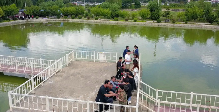 “鵲橋相會”環(huán)節(jié)中,8對夫妻男女分別從橋的兩邊緩緩前行,男士手捧玫瑰花,在湖中心的亭子相會時,男士單膝跪地,分別為自己的“女王”獻上了象征愛情的玫瑰花,他們緊緊深擁著對方,作為筑路人,深深感受到此刻能相聚在一起的來之不易,進一步拉近了彼此之間的距離,現場洋溢著濃濃的愛意和甜蜜。