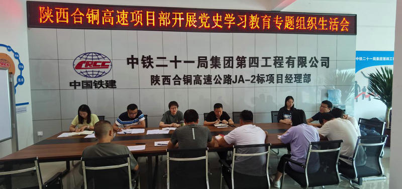 8月18日,中鐵二十一局四公司陜西合銅高速公路項目黨支部緊扣“學(xué)黨史、悟思想、辦實(shí)事、開新局”主題,召開了黨史學(xué)習(xí)教育專題組織生活會。公司副總經(jīng)理、總會計師許海英到會指導(dǎo)。