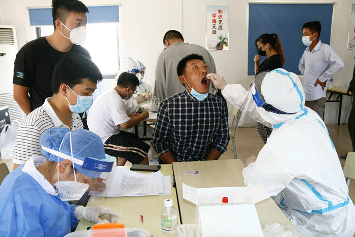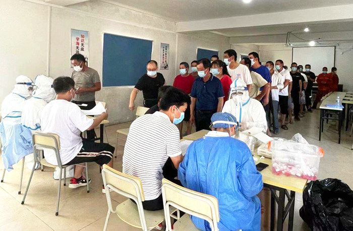 農(nóng)民工核算檢測從上午9點(diǎn)開始檢測到下午4點(diǎn)結(jié)束,午飯后接著檢測,一個(gè)隊(duì)一個(gè)隊(duì)地進(jìn)行。農(nóng)民工檢測完畢,下午4點(diǎn)10分,在位于鎮(zhèn)海區(qū)俞范東路的項(xiàng)目部食堂,職工和臨時(shí)工開始檢測。對少數(shù)在外出差、培訓(xùn)、休假人員,待歸隊(duì)后及時(shí)聯(lián)系鎮(zhèn)海區(qū)疾控中心進(jìn)行核酸檢測。中鐵十五局集團(tuán)二公司杭甬項(xiàng)目部呂奎元 王志琴