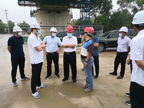 范余祥一行認(rèn)真查看了80m連續(xù)梁施工情況,對項目整體施工進度及相關(guān)工作給予了充分肯定。他勉勵參建員工繼續(xù)發(fā)揚央企責(zé)任擔(dān)當(dāng)和“鐵軍”精神,為安徽省鐵路建設(shè)和經(jīng)濟發(fā)展作出新的貢獻。