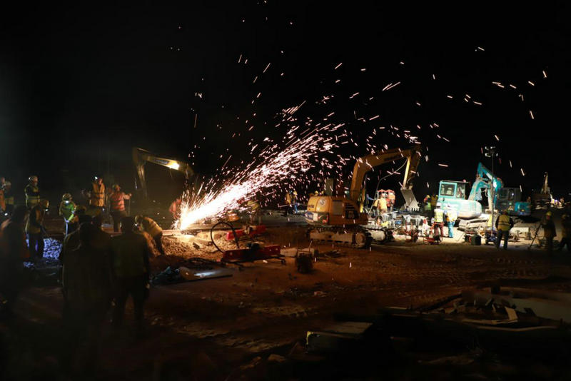 “快馬加狠鞭,齊心保節(jié)點”,沙地站改工程施工現場如火如荼,本次要點封鎖施工時長750分鐘,參建人數達200余人,機械30余臺。站改完成拆除既有道岔2組、插入道岔12組,連通相關渡線,開通2道、4道等多項施工任務。面對時間緊、任務重,人員、機械交叉施工,夜間施工安全風險高等諸多困難,項目部超前謀劃、周密部署、精心施工,安全、優(yōu)質、高效、有序地完成了沙地站改施工。