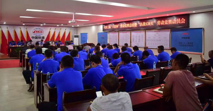 圖為勞動(dòng)競賽活動(dòng)會(huì)場(chǎng)情景 公司副總經(jīng)理、六賓項(xiàng)目經(jīng)理王永奇在會(huì)上說:“夢(mèng)想不會(huì)自動(dòng)成真,奮斗才有未來。”要求全體參建員工,在“決戰(zhàn)120天”勞動(dòng)競賽活動(dòng)中,堅(jiān)決落實(shí)集團(tuán)公司和公司的指示要求,上下聯(lián)動(dòng),推動(dòng)重點(diǎn)工作和問題解決。嚴(yán)格考核,強(qiáng)化獎(jiǎng)懲,全面宣傳動(dòng)員,營造奮戰(zhàn)氛圍。讓全體員工深刻領(lǐng)會(huì)保質(zhì)創(chuàng)效在廣西市場(chǎng)的意義,以飽滿的熱情和旺盛的斗志全力以赴投入大戰(zhàn)。各部門、各施工隊(duì)要切實(shí)增強(qiáng)緊迫感、使命感、責(zé)任感,真正把項(xiàng)目建設(shè)擺到重中之重的位置。加強(qiáng)服務(wù)指導(dǎo),加快項(xiàng)目建設(shè),為集團(tuán)公司和公司在廣西市場(chǎng)跨越式發(fā)展中作出積極貢獻(xiàn)。