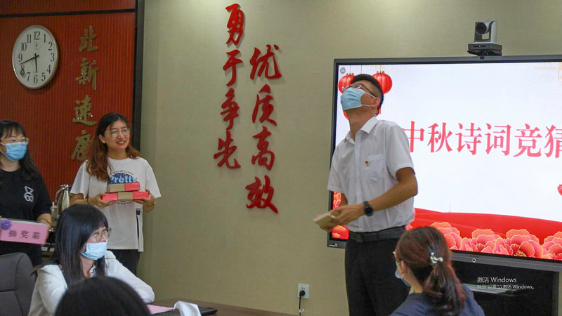 活動以北新投資公司工會慰問開頭,以生動有趣的送中秋盲盒視頻為呼應(yīng),通過員工自制有故事、有內(nèi)涵的中秋盲盒,把工會的溫暖送到員工心坎上。中秋詩會融入抽獎環(huán)節(jié),開展中秋詩詞吟詠競猜,基于中華民族自古以來對中秋家庭團圓的追求,激發(fā)情感共鳴。黨史百句順口溜,六名黨員打竹板娓娓道來,對百年黨史進行動情的表達、呼喚與抒發(fā)。中秋彩泥手工制作,員工們自己動手,用彩泥制作了栩栩如生的彩兔、月餅等手工制品?;顒又校€進行了全體員工中秋節(jié)前廉潔教育,簽訂廉潔中秋承諾書。