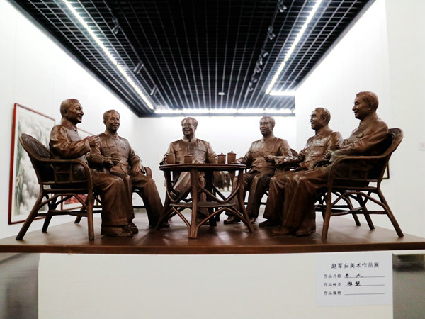 近幾年,趙軍安作為中央軍委后勤保障部創(chuàng)作室一級美術師,他對自己的要求更高了。他注重在傳統和西方雕塑、繪畫及其他姊妹藝術門類中吸取營養(yǎng),創(chuàng)作思想始終體現著時代性、民族性、精品性的個性特點;章法上追求大者要有浩瀚壯闊、撼天動地的氣勢,小者要有精巧獨到、妙不可言的情趣。在繼承與創(chuàng)新上,趙軍安始終認為:“藝術家要刻苦學習中外歷史名作,取其精華存于心,厚積而薄發(fā),美術家的職責不僅是要將既有的發(fā)揚光大而且還要用塑刀和畫筆去彌補歷史的缺憾,作品要追求驚人而雋永。”他覺得塑造難度最大的是毛澤東、劉少奇、周恩來等偉人形象、紅色重大題材作品和抗戰(zhàn)愛國作品。