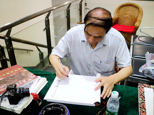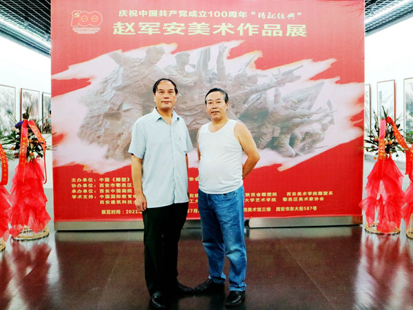 參觀就要結束了,在跟趙軍安合影留念后談到下步打算時,他說:“今年是建黨百年,先回老家鄠邑區(qū)辦好作品展覽。”剛過花甲的趙軍安還算年輕,在藝術的階梯上攀登更在當年,衷心希望趙軍安在藝術之路上越走越高、越行越遠。