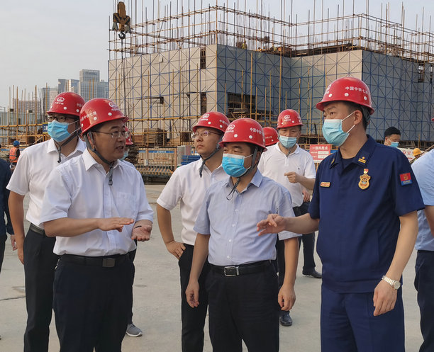 9月13日下午,鄭州市二七區(qū)區(qū)長蘇建設(shè)帶領(lǐng)應(yīng)急管理、消防救援等部門人員,來到鄭州中央商務(wù)區(qū)項目開展施工安全檢查。蘇建設(shè)一行查看了施工現(xiàn)場,向總經(jīng)理師丹、副總經(jīng)理趙銳詳細(xì)了解了商務(wù)區(qū)項目的建設(shè)進展、安全管理、防汛防疫工作落實情況,并對本項目的雙重預(yù)防管理體系給予了肯定。