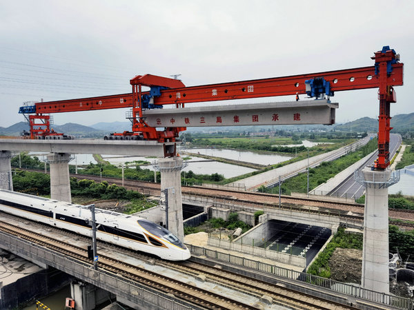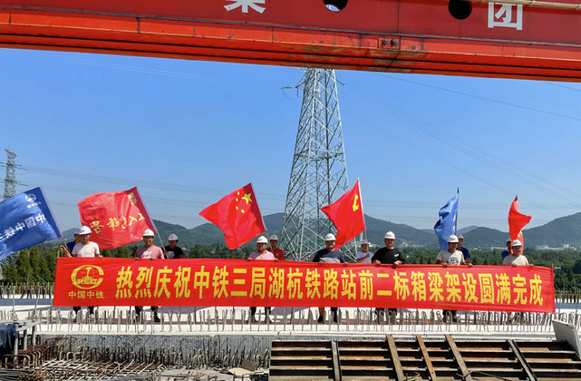 9月23日,在妙西線路所安全線中橋施工現(xiàn)場(chǎng),隨著架橋機(jī)將最后一榀32米單線箱梁穩(wěn)穩(wěn)落在1#—2#墩上,標(biāo)志著中鐵三局線橋公司承建的湖杭項(xiàng)目全線架梁施工全部完成,湖杭鐵路建設(shè)取得階段性進(jìn)展,為后續(xù)無(wú)砟軌道施工奠定了堅(jiān)實(shí)基礎(chǔ)。
