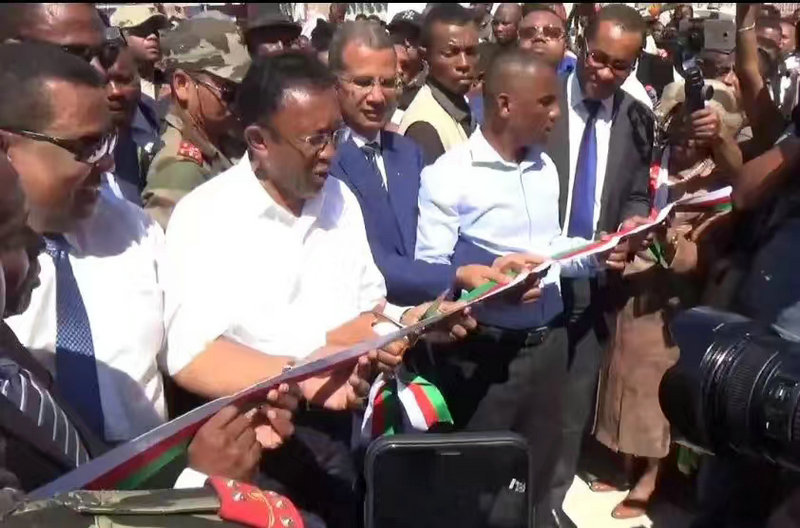 馬達(dá)加斯加總統(tǒng)埃里·拉喬納里曼皮亞尼納在9號(hào)國(guó)道竣工典禮上剪彩 郭亞軍攝影