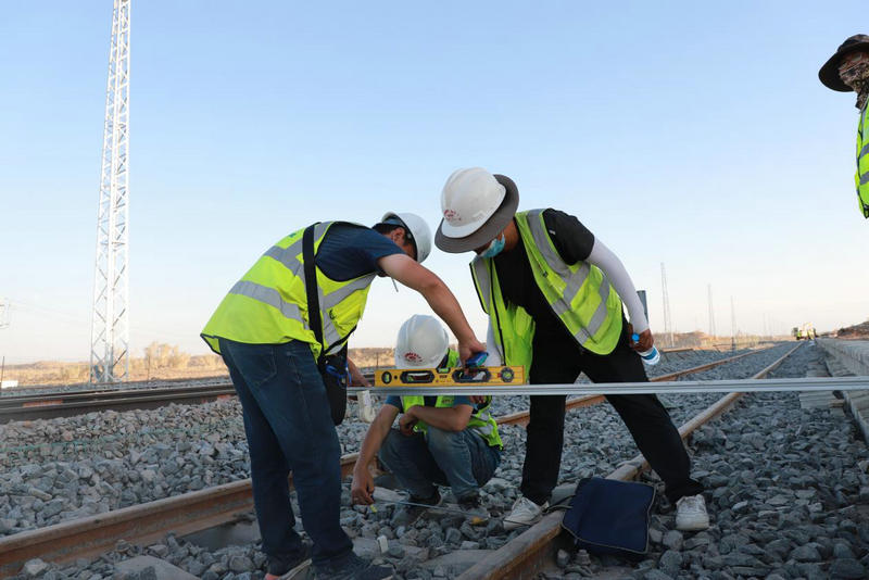 在中鐵二十一局管段內(nèi)進行靜態(tài)驗收時,專業(yè)驗收組對各項工程仔細(xì)驗收后,軌道工程驗收組組長宋世強對已完工軌道的施工質(zhì)量、鋪設(shè)速度給予了高度肯定,并表示,梧桐槽子至沙地站的25公里線路驗收,高標(biāo)準(zhǔn)、高質(zhì)量時刻刷新著我們對中國鐵建速度的新認(rèn)知。