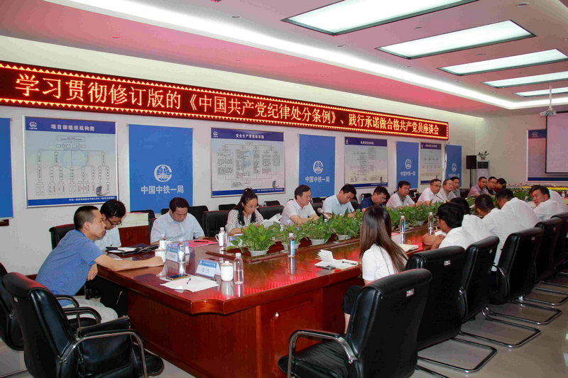 8月31日下午,中鐵一局建安公司黨委在西安地鐵五號線項目部開展“學(xué)習(xí)貫徹修訂版的《中國共產(chǎn)黨紀(jì)律處分條例》暨踐行承諾做合格共產(chǎn)黨員”座談會。
